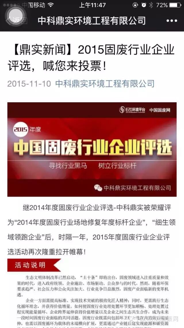 很多企業(yè)也都紛紛喊話投票,利用公眾號擴大企業(yè)影響力,利用固廢評選關(guān)注熱度期,不斷推出企業(yè)代言文章。