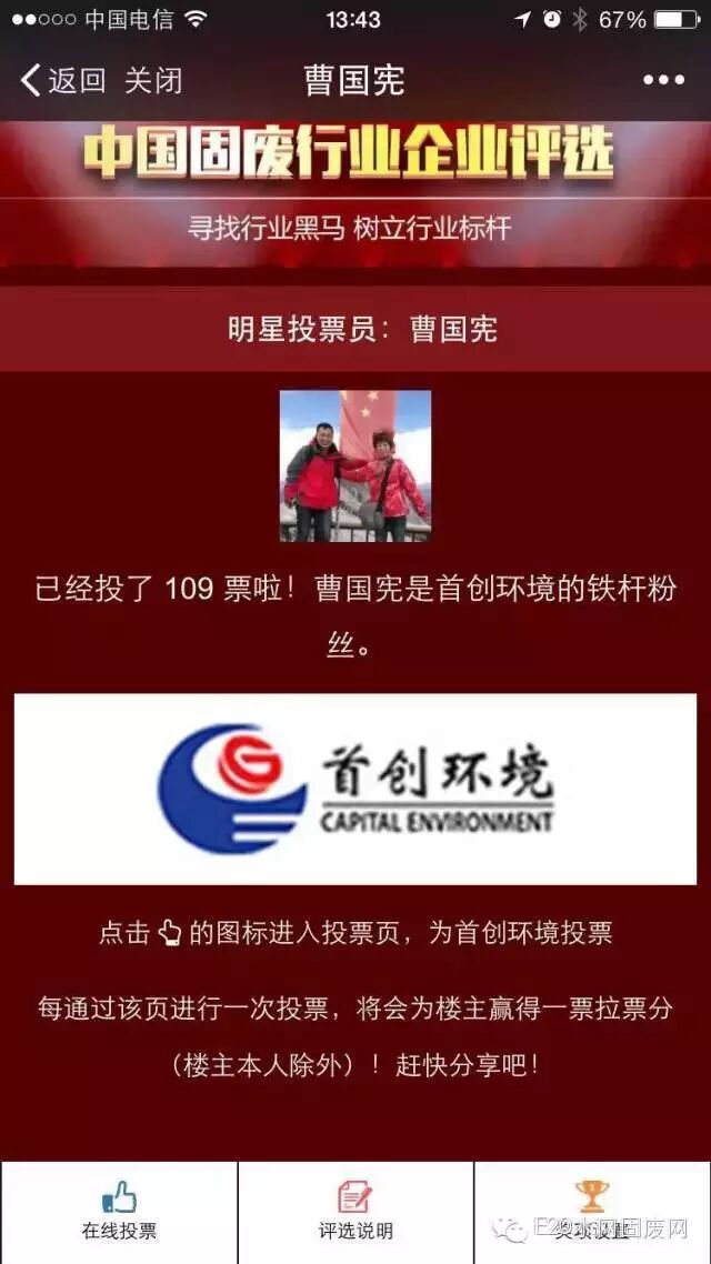 網(wǎng)絡(luò)投票結(jié)束了,2015固廢行業(yè)企業(yè)評選還在進行,希望大家繼續(xù)積極參與和關(guān)注,最終評選結(jié)果將在12月18日-19日舉辦的2015固廢戰(zhàn)略論壇上揭曉。敬請關(guān)注。